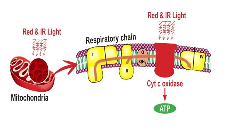 Scientific studies show that red and near-infrared light stimulate cytochrome c oxidase, a key enzyme in the mitochondrial respiratory chain. This leads to increased ATP production, giving muscle cells the energy they need to repair microtears caused by intense training.