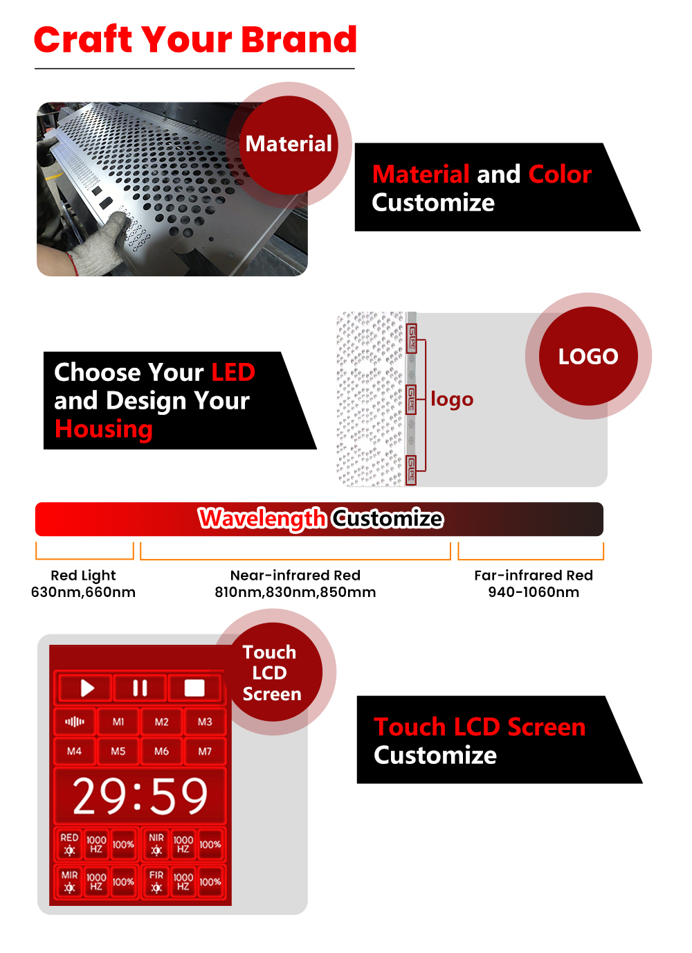 - 光谱:630nm,660nm, 670nm, 810nm, 830nm, 850nm, 940nm, 1060 nm 或可定制